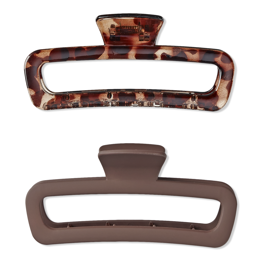 Secure a twist or updo in classic style with these Scünci PRIMP rectangular claw clips. One open-cut claw clip comes in a trendy tortoiseshell print, the other has a shiny black finish—both clips are the perfect complement to all hair colors.